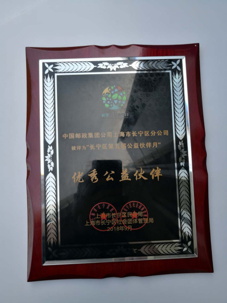 长期以来,长宁邮政爱心奉献社会和勇于社会担当,承担着区内10个街镇社区服务中心的低保、残疾人补贴等各类帮困经费的发放工作,热心为慈善组织提供爱心捐赠物资的上门收寄服务,并积极投身为贫困地区儿童捐赠学习和生活用品的各类活动中去。上海市和长宁区民政局、天山路街道办事处领导出席活动,并授予长宁邮政“优秀公益伙伴”奖牌,区分公司工会主席钱丽萍上台领奖。