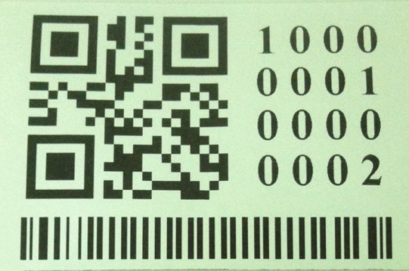 标签规范为100mm*60mm,条码格式为128码,14位流水号,格式为6位邮编信息+8位流水号,标签格式为二维码加条形码附带编码形式,标签材料为冠豪白底PET强粘不干胶,碳带为理光全树脂B110CR,条码表面处理为PET覆膜。样本见下图: