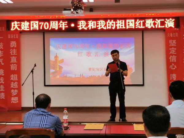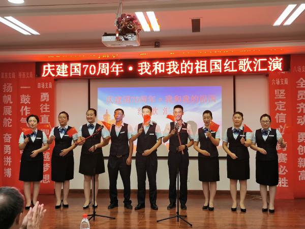 为喜迎建国70周年,振奋员工工作士气,全力冲刺金融跨赛,9月17日晚,唐山曹妃甸区分公司组织“庆建国70周年·我和我的祖国”红歌汇演活动。曹妃甸分公司领导班子及职工近200人欢聚一堂,共同为祖国提前“庆生”。
