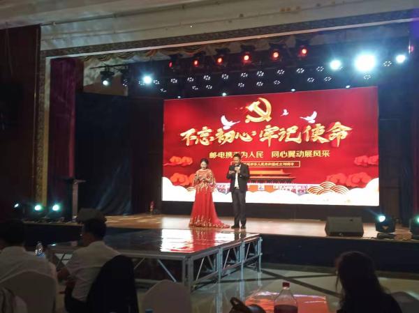 此次联谊会是邮政和电信两家员工共同欢庆中华人民共和国成立70周年,歌颂70年来我国社会主义现代化建设取得的辉煌成就,同时,通过此活动表达了邮政、电信全体员工对我们伟大祖国的良好祝愿。联谊会上两家公司总经理分别献上了致辞,共同祝愿祖国第70个生日的到来,两家公司分别以党支部为单位组织党员共排练了18个歌唱祖国、祝福祖国生日到来的歌曲、舞蹈、小品等,一个又一个表达爱国情怀的节目将联谊会现场推向一个又一个高潮,邮政公司表演的《鸿雁》蒙古舞表达邮政企业在百年邮政的良好信誉中为百姓传送佳音的旋律,一曲《我爱你中国》韵律瑜伽表达了对祖国的爱戴,电信公司表演的诗朗诵《读中国》深刻表达了对国家寄予的希望和依恋。邮政公司的一首《精忠报国》歌伴舞将节目推向高潮,充分体现了精忠报国是人民安康、国家强盛的永恒主题,最后由邮政和电信两家公司7位领导共同演唱了一首寻梦,寻根,直达内心深处的歌曲《不忘初心》。