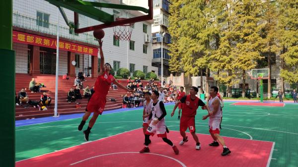 篮球运动,是一项群众参与广泛、深受欢迎的文体活动,是展示团队精神和篮球元素优化组合的运动,是全员健身活动重要一项。为积极倡导“我运动、我健康、我幸福”的理念,加强身体锻炼,不断增强体质,以饱满的热情昂扬的斗志投入到当前跨年赛旺季生产工作中去。十堰市分公司于10月18日--20日举办了第八届职工篮球赛。各县(市、区)分公司,市寄递事业部、市分公司直属机关共9个代表队近90名队员参加。