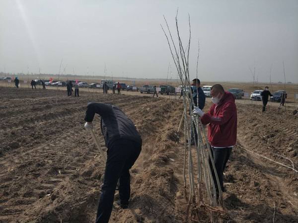 4月14日,通榆县分公司组织员工来到植树现场,积极参与义务植树活动。大家配合默契、繁忙有序,挖坑、领苗、栽植、浇水,按照统一标准栽下一颗颗树苗,共计栽下150余棵树苗,为原本荒芜的坡地增添了春天的绿意。