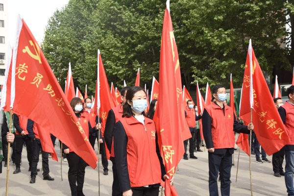 誓师大会在运营中心樱桃揽收战士们的擂鼓声中拉开帷幕,运营中心机关管理人员、区域经理、揽投部经理组成气势雄宏的党员助农先锋队,鸣鼓挥旗,为今年的樱桃寄递揽收鼓劲助势。