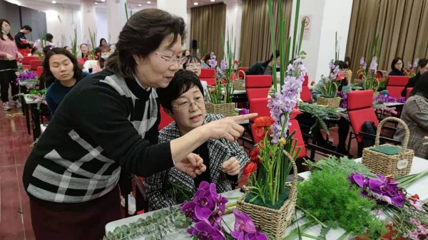 市分公司纪委书记张筱辉也在百忙之中来到培训现场,观摩员工的文化体验活动,并饶有兴致的与员工同乐,设计完成了一组花篮作品。
