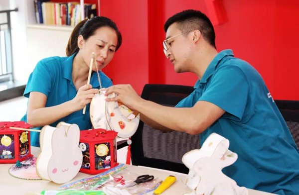 在中秋节到来之际,中心局工会结合邮运生产日渐繁忙的实际情况,组织部分一线职工利用午休时间制作了“花草灯笼”“喜庆走马灯”“繁花盘扇”等应节应景的手工作品。当喜爱的作品完工时,每个人的脸上都洋溢着满足、幸福的微笑。