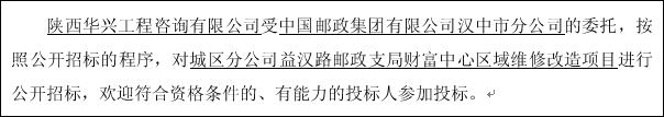 三、招标人名称:中国邮政集团有限公司汉中市分公司