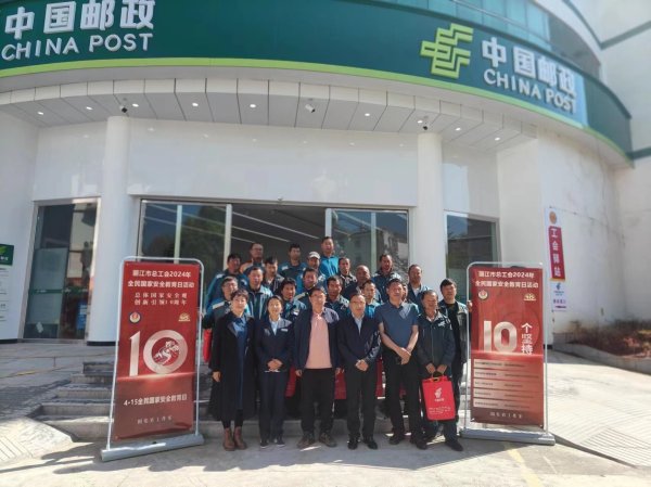 4月15日上午,丽江市总工会联合丽江市邮政分公司,组织邮政营业员、快递员共40人,在象山路营业厅工会驿站开展“4·15全民国家安全教育日”进企业宣传活动,丽江市总工会党组成员、副主席吉克木呷和四级调研员胡学军出席活动,并与邮政职工开展现场座谈。