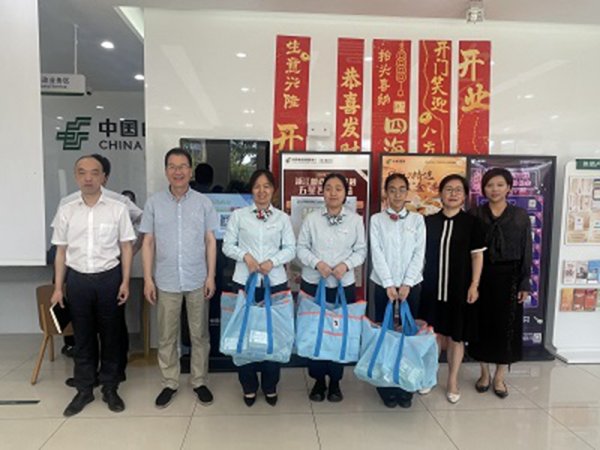 7月7日-8日,嘉兴市邮政工会主席吴水军一行赴嘉善、桐乡分公司开展高温慰问活动,先后走访了嘉善惠民揽投部、大云邮政所,桐乡骑塘邮政所。
