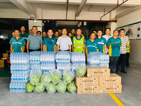 此次慰问不仅送去了藿香正气液、西瓜、矿泉水等实用物资,更通过零距离互动,让员工感受到企业的关怀和温暖。