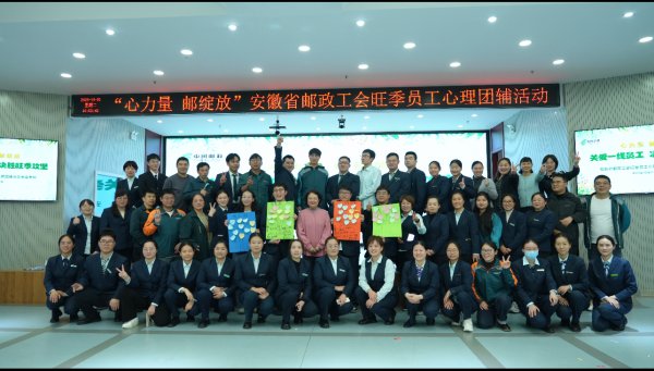 金秋十月,战鼓催征。为助力全省邮政决胜旺季营销攻坚战,10月21日,淮南市邮政工会成功承办全省“心力量 邮绽放”旺季员工心理团辅活动。本次活动由省邮政工会统筹组织,旨在为一线员工纾解压力、凝聚合力,为旺季攻坚注入温暖而坚定的“心”动能。 作为承办单位之一,淮南市邮政工会高度重视、周密策划,各基层分会协同配合,精心布置场地、统筹人员安排、落实后勤保障,确保活动有序开展。全市50名来自揽投、理财等关键岗位的一线员工代表齐聚一堂,共同体验了一场寓教于乐、润泽心灵的“心理按摩”。 活动在“请你跟我这样做”的破冰互动中拉开帷幕,轻松的氛围迅速拉近了彼此距离。随后的“孙悟空”“手口不一”等游戏,既考验反应与专注,又激发欢声阵阵;“词语花式接龙”环节更展现了员工们的机智与才情,现场仿佛化作灵感迸发的“文学工坊”。在“摩斯密码”“吸管挑战赛”等团队任务中,队员们凝心聚力、协作无间,以高效的沟通与执行力圆满达成目标,其昂扬向上的精神风貌赢得了心理专家团队的频频点赞。活动尾声,各小组共绘“团队能量树”,以笔墨寄托祝福,以色彩凝聚信念。一棵棵枝繁叶茂的“能量树”,不仅承载着员工对团队的美好期许,更彰显了决胜旺季的坚定信心。 此次心理团辅,既是省分公司党委心系基层、传递关爱的具体实践,也是淮南市分公司落地人文关怀、锻造高素质队伍的有力举措。参与员工纷纷表示,通过活动有效释放了压力、增强了归属感,未来将以更加饱满的热情、昂扬的斗志和健康的心态,把“心”力量转化为“实”行动,在旺季攻坚的战场上奋勇争先,为安徽邮政“皖美”形象增辉添彩!