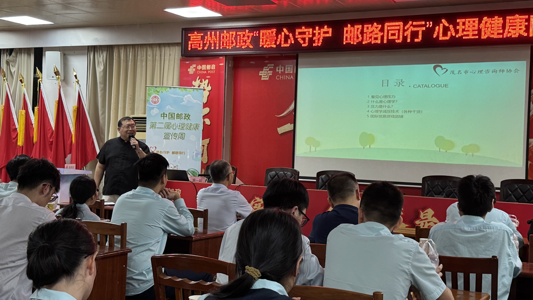 为进一步健全员工心理健康服务体系,维护员工身心健康权益,响应集团、省邮政工会“中国邮政心理健康宣传周”工作部署,茂名邮政工会联合高州市分公司举办“暖心守护,邮路同行”心理健康专题团辅活动。活动特别邀请广东省心理咨询师协会执行会长、茂名市心理咨询师协会会长施一昕博士现场授课,40余名近年新任支局长、理财经理及新入职大学生参与其中,在专业引导下学习减压技巧、凝聚团队合力。