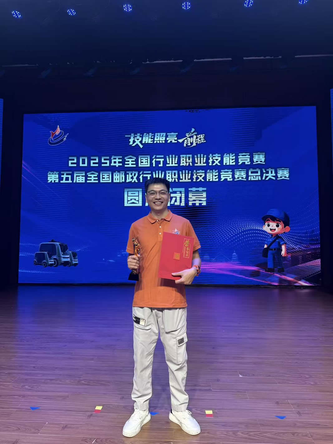 在各方精心培育下,柯有志的技能水平实现质的飞跃。广东省竞赛现场,他凭借在派送路线优化与应急处置考核中的精准判断力,以满分实操成绩惊艳全场,成功摘得“快递员”工种一等奖,延续了2024年在广州市邮政行业技能竞赛中同项目冠军的强势表现。这份成绩,既是柯有志日夜苦练的回报,更是市邮政工会培育体系的生动印证——始终相信,唯有为员工搭建优质成长平台,才能让技能人才脱颖而出。