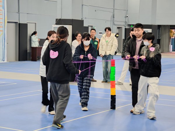 活动现场热闹非凡,趣味盎然的项目让大家乐在其中。“无敌风火轮” 考验着团队的协同默契,队员们步调一致、携手向前,朝着目标稳步迈进;“东西南北跑” 尽显青年们的敏捷身手,大家反应迅速、灵活穿梭,尽情展现青春风采;“沙包投掷盘” 比拼精准与沉稳,每一次投掷都凝聚着专注与期待;“合力建高楼” 挑战团队耐心与协作,大家分工明确、默契配合,共同搭建起 “胜利大厦”;而 “同心鼓击鼓” 项目更是将现场气氛推向高潮,队员们凝心聚力、协同共振,鼓点声声传递着团结的力量,欢呼声、喝彩声此起彼伏,响彻整个活动中心。集体项目结束后,“我与天公试比高” 个人趣味项目同样吸引了众人踊跃参与,大家奋勇争先,在欢乐比高中释放压力、增进友谊。