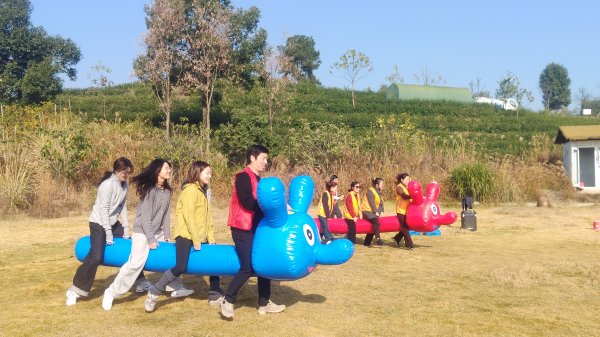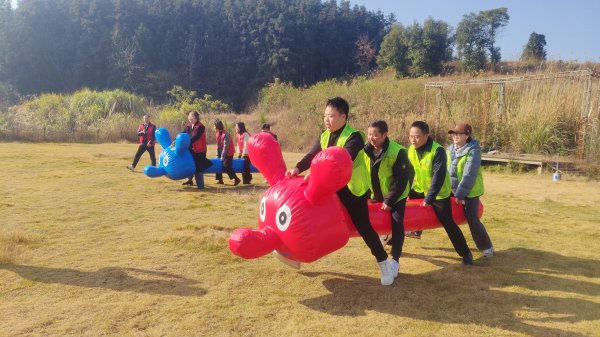 在毛毛虫项目中,队员们骑乘充气毛毛虫同步发力,喊着整齐划一的口号稳步向前。大家步伐协同、默契配合,脚下的毛毛虫在赛道上快速穿梭,身后传来阵阵加油呐喊声,每一步都凝聚着团队的向心力。