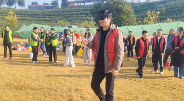 蒙眼敲锣项目同样人气爆棚,蒙眼后原地转三圈,在队友的指引下摸索前行,有的步履稳健精准敲中,引得全场欢呼;有的步履踉跄偏离方向,逗得众人捧腹大笑,欢乐氛围持续升温。