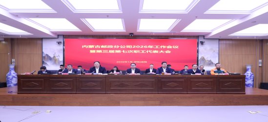 1月24日,内蒙古邮政分公司2026年工作会议暨第三届第七次职工代表大会在呼和浩特市顺利召开,区公司领导班子成员,全体职工代表、三级副及以上领导干部出席会议。