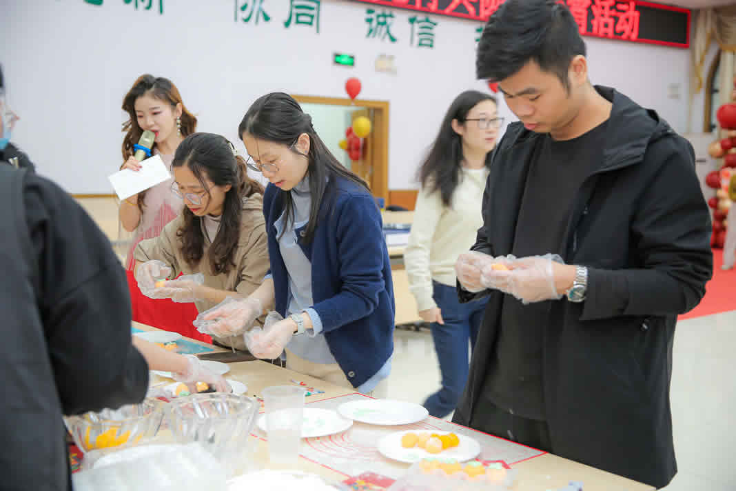 除了妙趣横生的游戏,工会还贴心准备了丰富的茶歇点心与互动体验。在“团团圆圆”DIY手工区,员工们化身“点心师”,和面、拌馅、搓圆,一双双巧手翻转间,一个个饱满圆润的汤圆陆续诞生。香甜精美的糕点、暖心暖胃的热饮,让员工们甜在舌尖、暖在心间。为增添活动惊喜,每项游戏均设立专属奖品,胜出的员工在收获欢乐的同时,也赢得了工会精心准备的礼品,真正实现乘兴而来、满载而归,脸上始终洋溢着幸福的笑容。