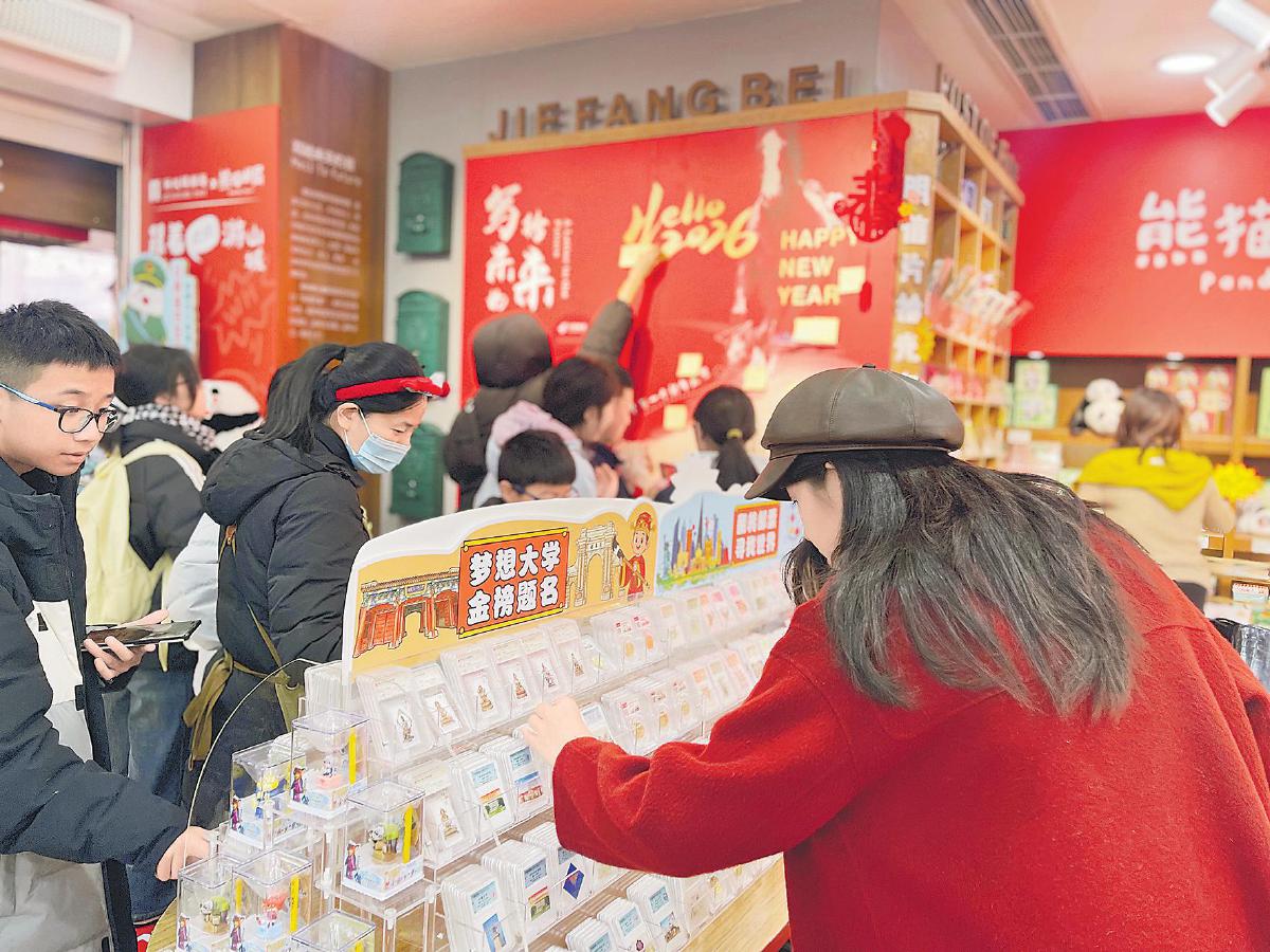 “过年了,让远在海外的朋友们也感受下中国年。”春节期间,家住重庆南坪的程阿姨来到解放碑主题邮局,挑选了《邮票上的重庆》邮册、重庆地标冰箱贴、马年生肖邮册、熊猫盲盒等礼物,寄给国外的好友们。对她来说,这些礼物既有特色,也承载着山城文化记忆。