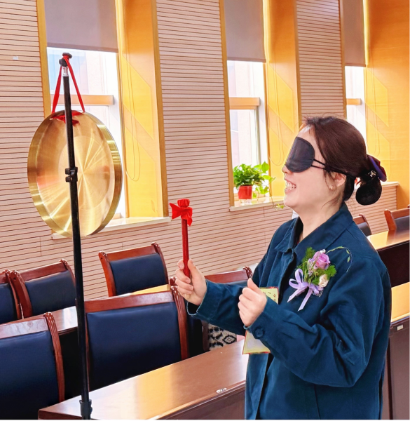 表彰环节过后,元宵趣味游园会正式开启,猜灯谜、套圈、盲人敲锣、飞盘九宫格、飞盘高尔夫五大游戏关卡同步开放,瞬间点燃了职工们的参与热情。活动现场人头攒动、热闹非凡,职工们手持《游园闯关卡》自由参与各个游戏,大家各显身手、相互配合,在猜灯谜的脑力比拼中凝神思索,在套圈、盲人敲锣的趣味互动中欢声笑语,在飞盘系列游戏中体验运动乐趣。