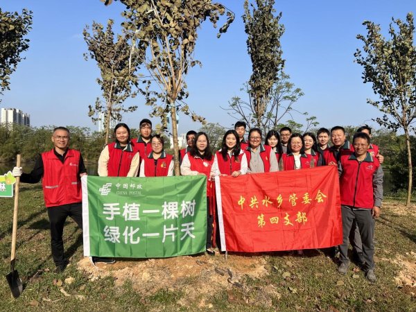 道滘分会与闸口村委会结对共建植树,有序完成树苗栽植养护,为掌洲公园增绿添彩,展现邮政员工爱绿护绿良好风貌。