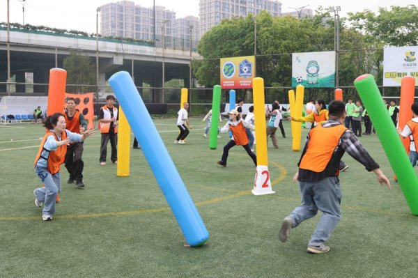 随后,各代表队精神抖擞亮相,喊出响亮口号。赛场上,“万众一心”拔河、“勇立潮头”协作赛等趣味项目依次开展,选手们在欢声笑语中挥洒汗水,生动诠释了“快乐工作,健康生活”的理念。