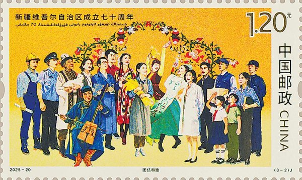 《新疆维吾尔自治区成立七十周年》纪念邮票将于9月21日发行。该套邮票1套3枚,邮票图案名称分别为:美丽新疆、团结和睦、开放高地。