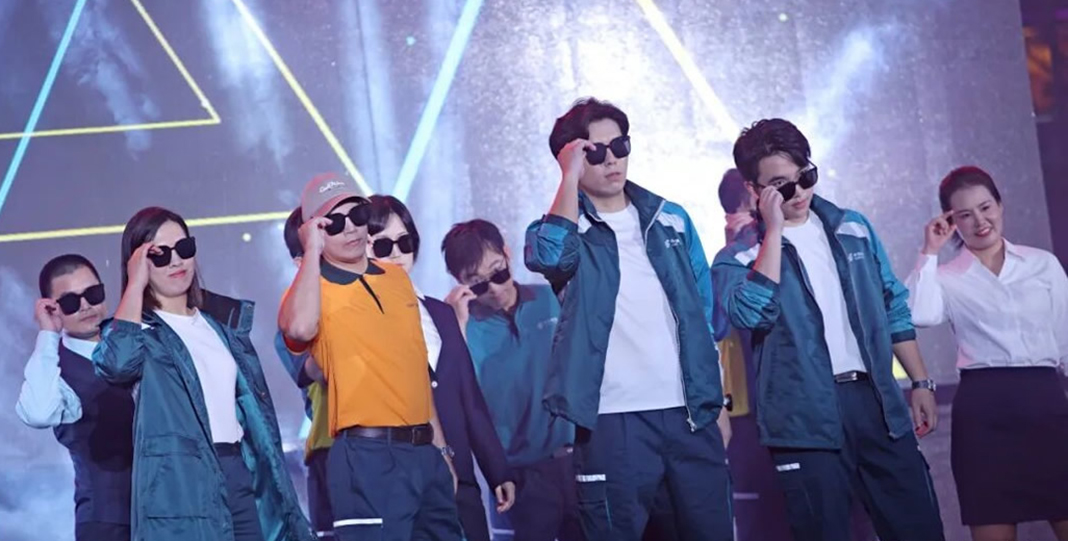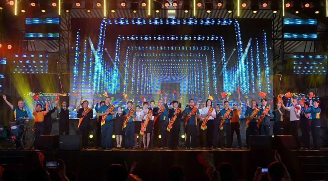晚会当晚,动感音乐响起,30名邮政员工身着代表寄递、金融、邮务三大业务板块的特色服装闪亮登场,开启《EMS 型动派》走秀表演。他们步伐坚定有力、身姿挺拔昂扬,在舞台上灵活变换队形,不时穿插邮政专业服务手势,将“专业严谨、高效快捷”的服务理念与“充满活力、积极向上”的团队风貌深度融合、展现得淋漓尽致。当各级邮政劳模先进佩戴荣誉绶带登场时,全场掌声与欢呼声此起彼伏,生动彰显了邮政在服务地方经济社会发展中的重要支撑作用。
