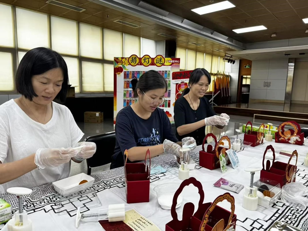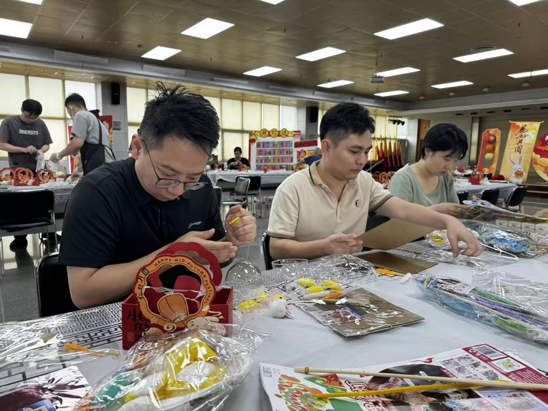 活动现场暖意融融,欢声笑语不断。创意手工区里,同事们热情高涨:在专业老师指导下,大家专注投入冰皮月饼制作,和面、包馅、压模,一个个精致可爱的月饼在手中成型,满含成就感与节日祝福;手工灯笼制作同样人气十足,大家巧手翻飞,组装、粘贴、绘制,一盏盏独具匠心的灯笼点亮现场,让传统节日氛围愈发浓厚。