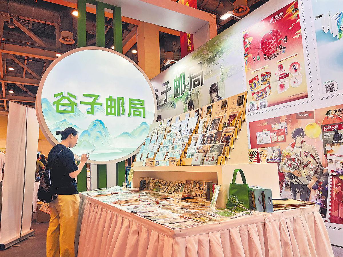 苏州邮政“谷子邮局”亮相江苏书展,吸引读者驻足选购特色邮品。