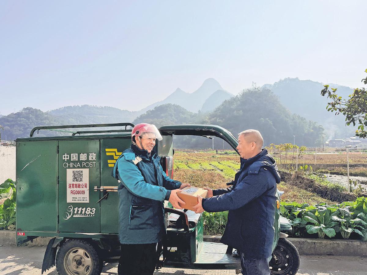 岁寒山静,晴岫浮烟。时值粤北一月,清冽的寒风拂过连绵山野,广东省清远市连南瑶族自治县三江镇金坑村静卧在一片青灰的冬意之中。投递员唐志辉驾驶着绿色邮车缓缓驶入村口,车轮声在寂静中格外响亮。“李大爷,您儿子寄的快递到了!”他轻车熟路地将邮件交到村民手中。