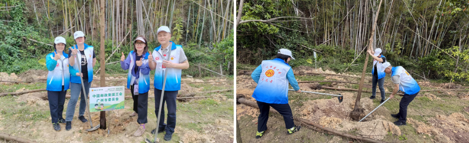 3月20日,广州邮政工会选派4名一线职工代表,参与市总工会在从化良口镇鸭洞河畔举办的“绿美广州‘工’同行,携手奋进‘十五五’”2026年“广州职工公益林”植树活动,与全市劳模先进、职工志愿者并肩植绿,展现广州邮政职工积极参与公益、共建绿美广州的良好风貌。