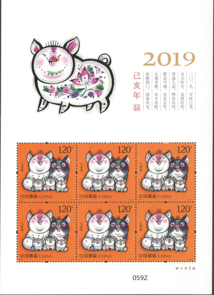 中国邮政定于2019年1月5日发行《己亥年》特种邮票1套2枚,小本票1本。详情如下: