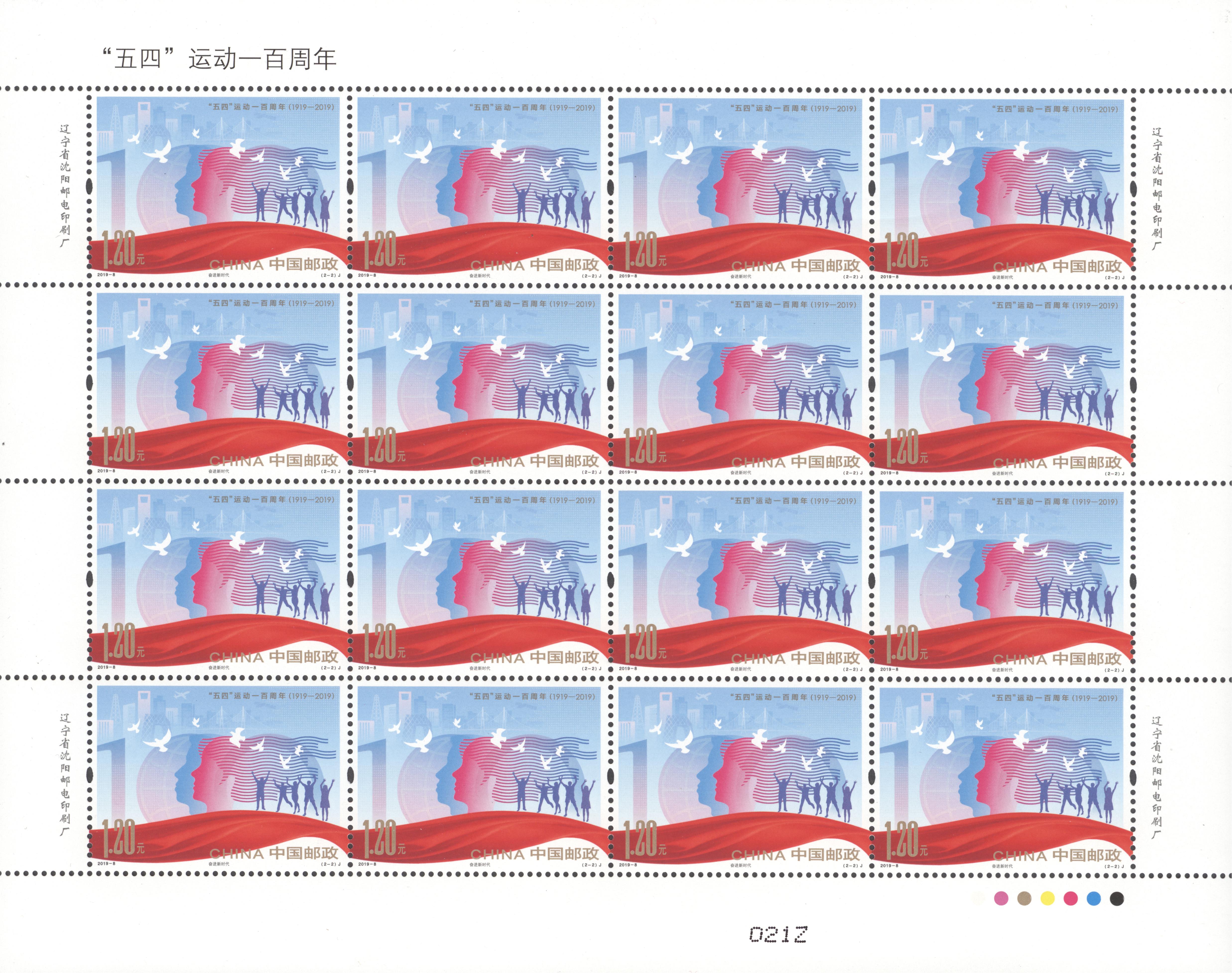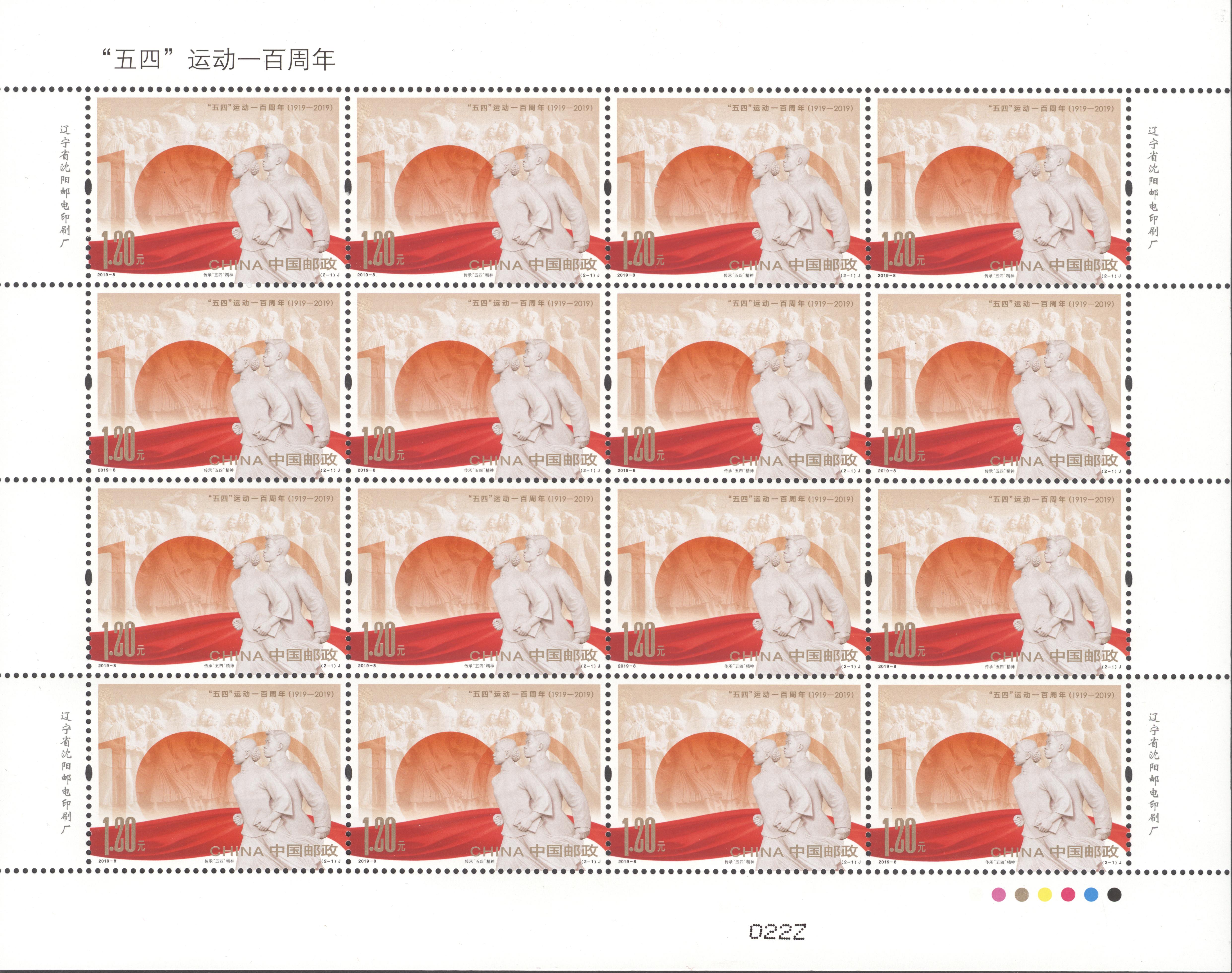 中国邮政定于2019年5月4日发行《“五四”运动一百周年》纪念邮票1套2枚。详情如下: