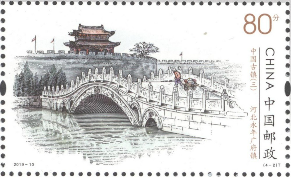 一座座古镇构成了中华文化的不同侧面,荟萃成一部丰富多彩的人文百科全书。《中国古镇》系列邮票表现了我国众多各具特色的古镇,记录下了我国传统建筑风貌、优秀建筑艺术、传统民俗民风和原始空间形态。本套邮票为《中国古镇》系列第三组,展现了天津西青杨柳青镇、河北永年广府镇、浙江江山廿八都镇、湖南永顺芙蓉镇。
