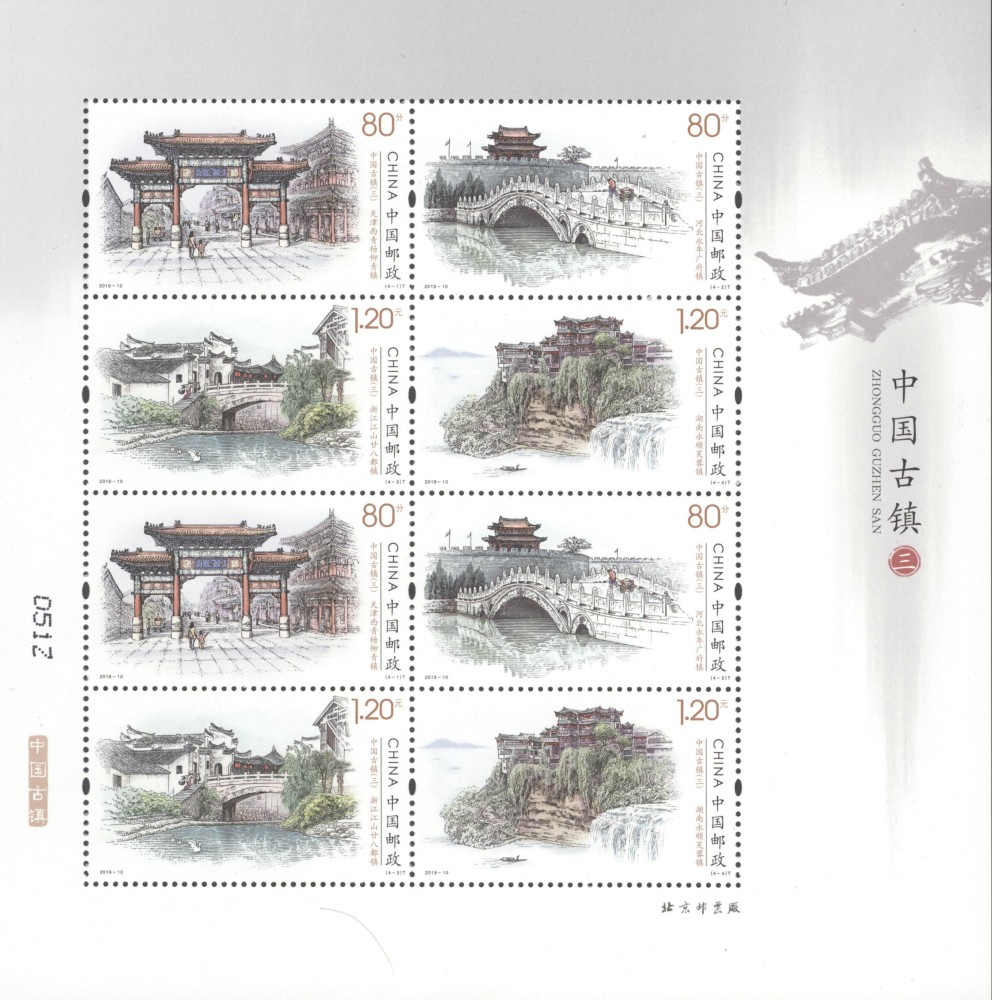 中国邮政定于2019年5月19日发行《中国古镇(三)》特种邮票1套4枚。详情如下: