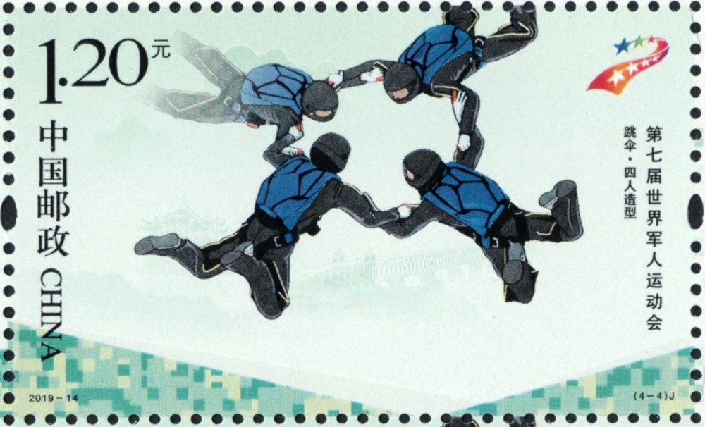 中国邮政定于2019年7月10日发行《第七届世界军人运动会》纪念邮票1套4枚,全套邮票面值为4元。