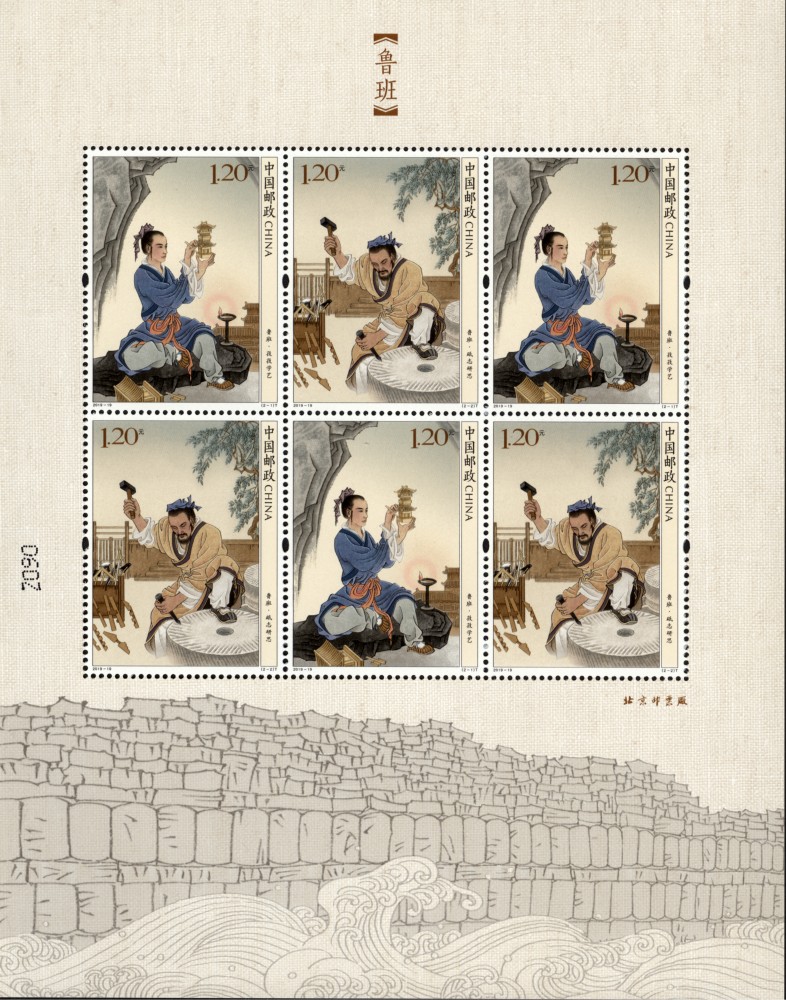 中国邮政定于2019年8月24日发行《鲁班》特种邮票1套2枚,小型张1枚。全套邮票面值为8.40元。