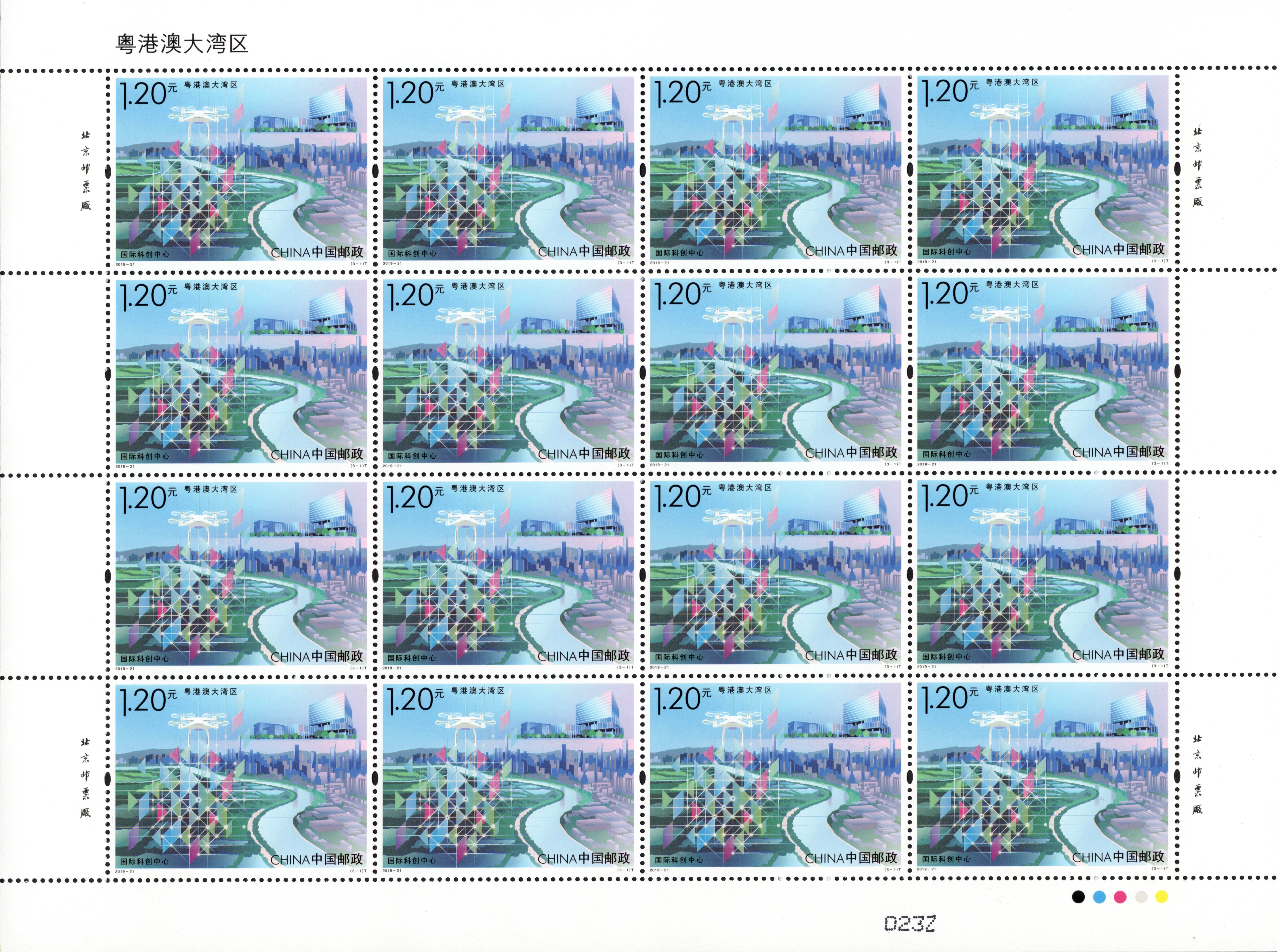邮票印制使用了特殊油墨点缀画面,凸显了粤港澳大湾区的科技感和现代感。