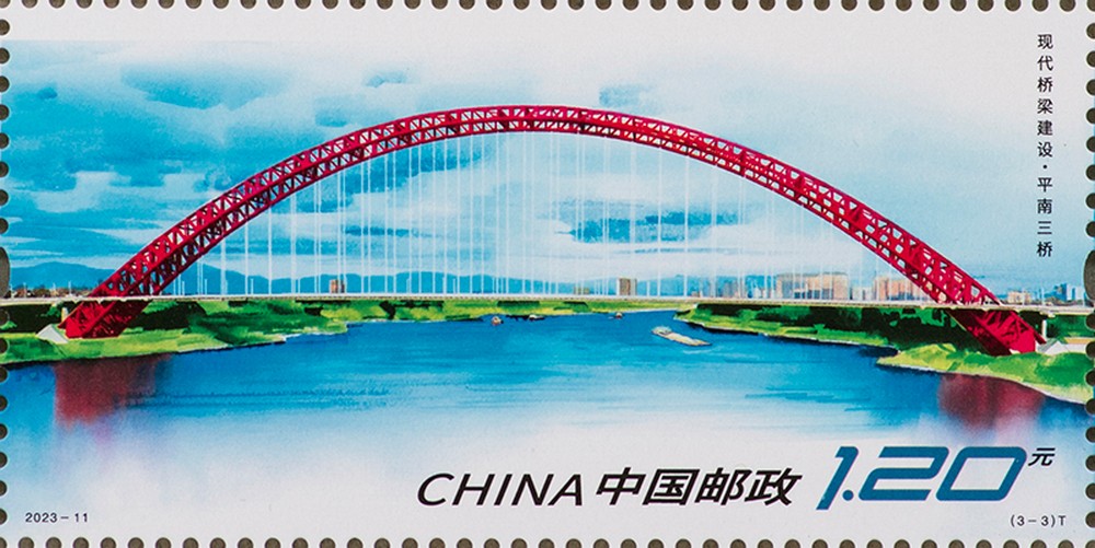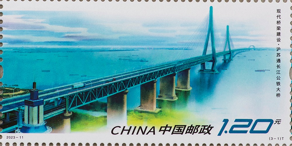 中国邮政定于2023年6月30日发行《现代桥梁建设》特种邮票1套3枚、小型张1枚,邮票图案名称为沪苏通长江公铁大桥、瓯江北口大桥、平南三桥,小型张图案名称为北盘江第一桥。全套邮票面值9.60元。邮票计划发行数量为735万套,小型张计划发行数量585万枚。