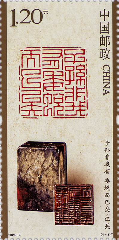 中国邮政定于2024年3月20日发行《中国篆刻(二)》特种邮票1套4枚,邮票图案名称分别为:琴罢倚松玩鹤·文彭;笑谈间气吐霓虹·何震;子孙非我有 委蜕而已矣·汪关;但看花开谢 不言人是非·程邃。全套邮票面值4.80元。邮票计划发行数量为套票698万套,版式二90万版。
