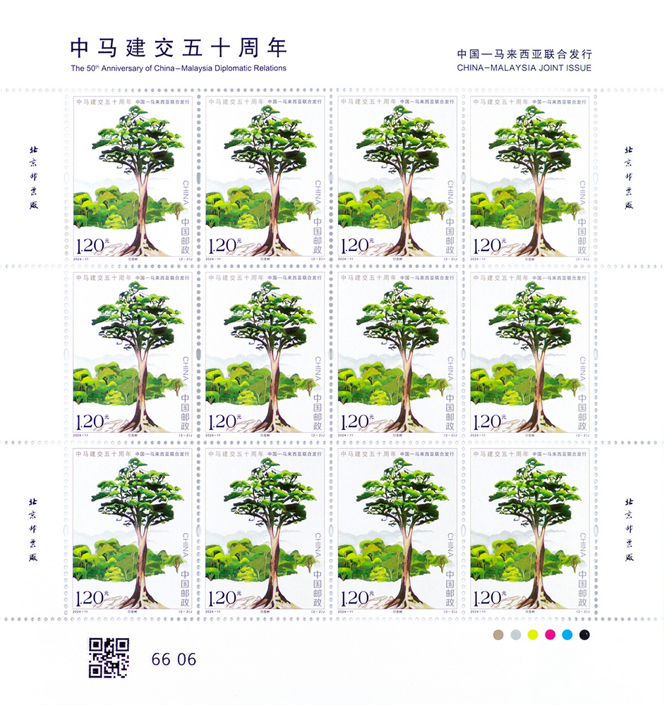 中国邮政定于2024年5月31日发行《中马建交五十周年》纪念邮票1套2枚,该套邮票与马来西亚联合发行,邮票图案名称为松树、印茄树。全套邮票面值2.40元。邮票计划发行数量为665万套。