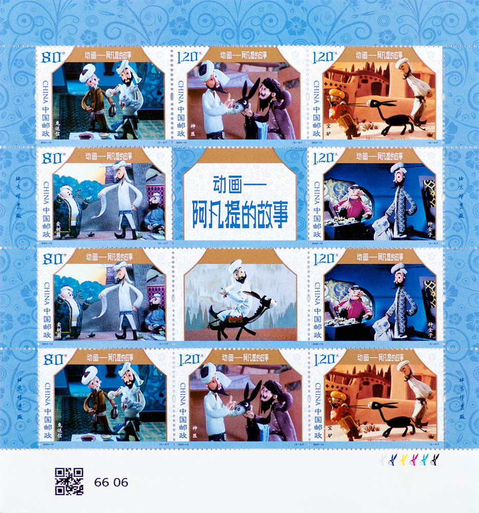 中国邮政定于2024年6月1日发行《动画——阿凡提的故事》特种邮票1套5枚。详情如下: