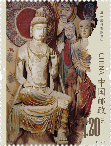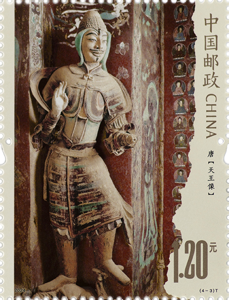 中国邮政定于2024年8月3日发行《莫高窟(二)》特种邮票1套4枚、小型张1枚,邮票图案名称为北凉弥勒菩萨像、唐胁侍菩萨像、唐天王像、唐供养菩萨像,小型张邮票图案名称为隋释迦佛一铺。全套邮票面值10.80元。邮票计划发行数量为620万套,小型张530万枚。